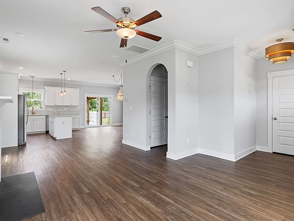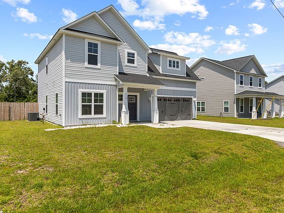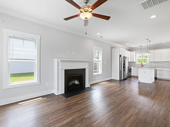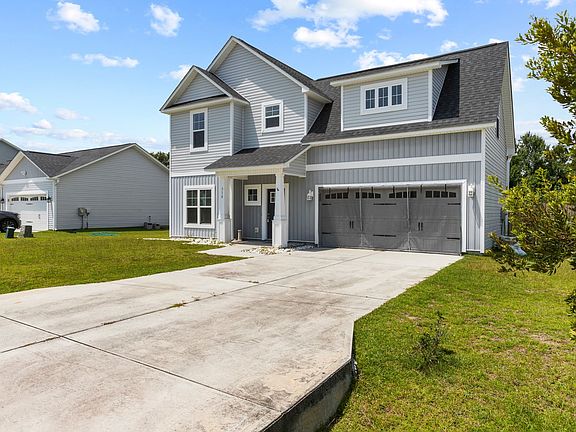Like new 3 bedroom 2.5 bathroom home in the popular waterfront neighborhood of Kingsbridge II The downstairs has an open floor plan with LVP and crown molding and beautiful light fixtures. Large living room has electric fireplace and decorative mantle. The kitchen has quartz countertops, beautiful tile backsplash, stainless steel appliances and a large island to enjoy a meal or prep food. The upstairs is very spacious with 3 bedrooms and a bonus room over a large 2 car garage. Upstairs Master has trey ceilings, walk-in closet and large bathroom with double sinks. Enjoy a good book on the front porch or relax under the gazebo on the back deck. The backyard overlooks natural vegetation. The neighborhood has a community boat ramp. Convenient to local beaches, historic downtown Swansboro and other local attractions. Short drive to Camp Lejeune.