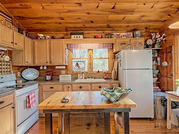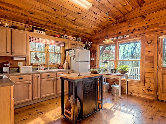 Walk to Lake BR!! Quaint and Quiet, Rustic Charmer is nestled on gentle wooded tract in upscale paved community just minutes from historic downtown area and Lake BR Marina - surrounded by the mtns & towering hardwoods! This stunner is "cute as can be" with 2 bedrooms/1bath + large living/kitchen/dining area with cathedral ceilings that open to a large covered porch & wrap around deck amid lush mountain landscape, wood floors & interior along with warm stone fireplace, rustic kitchen, gentle driveway with plentiful parking and easy access in upscale paved rustic community, just a short bike ride from lake side walking/hiking trails...perfect for that much needed getaway cabin or great for vacation rental - prime area - this one won't last long