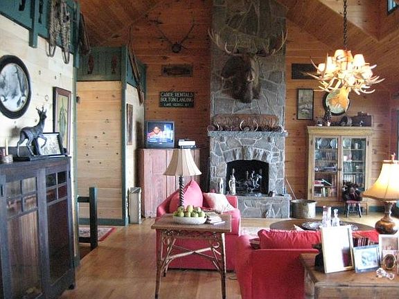 Beautiful Adirondack Style Lakefront HomeAdirondack home on 250 acre motorboat Highland Lake. Plenty of glass and wood - low maintenance. 3 gorgeous fireplaces, cathedral ceilings, hardwood floors, new stainless steel appliances, gorgeous stone patio overlooking Highland Lake, and studio guest apartment. Charming home set on over 6 acres of lakefront land. MAGICAL!, Beds Description: 2+BedL, Baths: 1 Bath Level 1, Baths: 1 Bath Level L, Eating Area: Modern KT