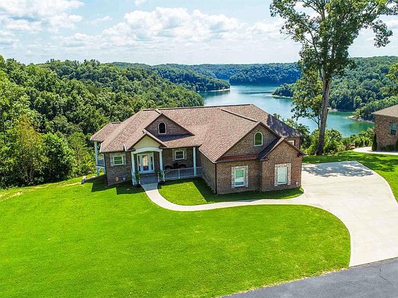 Beautiful 3-year-old maintenance free home with breathtaking year-round views of Lake Cumberland from EVERY room. Featuring an open floor plan with tongue and groove barrel ceilings and large windows overlooking the lake as you enter. The main floor boasts a stone gas stone fireplace, open kitchen and dining area, master suite and laundry room. The kitchen is equipped with stainless steel appliances including a gas stove, granite counter tops and large center island. Master suite also w/ large windows overlooking the lake. Master bath has double sinks, jetted tub, and a spacious tiled shower. Downstairs offers an open family room that walks out to a lake view patio, 2 bedrooms w/ lake views, and full bath. A 3-car garage, covered Trex deck off the main floor. Seller sacrificing to move closer to family. Call for a private showing today!
