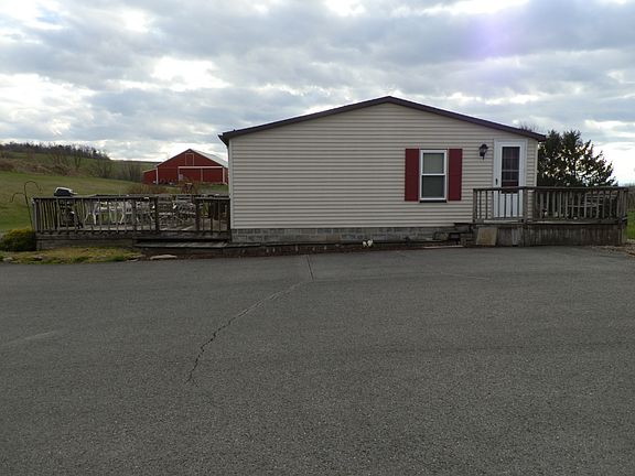 Motivated Seller !!! Modern double-wide home situated in rural country setting. Skylights in Kitchen and both bathrooms. Ceiling fans in master bedroom and dining room. Well insulated. Heat: Oil hot-air / wood stove in basement. AC: central air. Full basement with Superior Walls basement system , partially finished with 4th bedroom (electric baseboard). Garage: 30 X 32 pole barn w/ 8' high doors and concrete floor. Home: 200 Amp service / Basement: 100 Amp service / Garage: 100 Amp service and generator hookup. 16 X16 deck with roll-out awning. 10 X 12 Storage shed. Private well and septic. Macadam driveway and parking area. Option available for Generator and Riding mower and attachments to stay with property. Plenty of room for kids and garden.