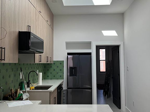 Located in Prospect Lefferts Garden on a tree line block, this two bedroom has bedrooms located on opposite ends of the apartment. Great light with three exposures and a huge skylight that allows sunlight into the kitchen and living room area. The unit has white washed oak floors and great closet space with overhead storage. Exposed brick and brand new appliances in black stainless steel. Located on the third floor of a walk up, this unit comes with a free cleaning every month; A flat screen tv comes with the apartment as well. Walk to Prospect Park, Brooklyn Botanic Gardens and the Brooklyn Museum. Tons of restaurants and amenities nearby. Available now.