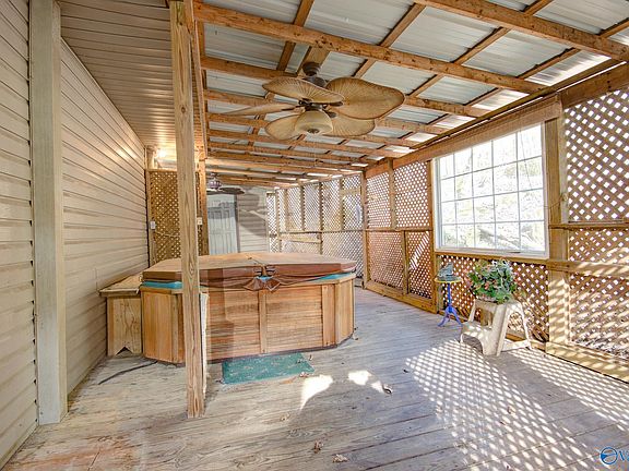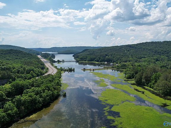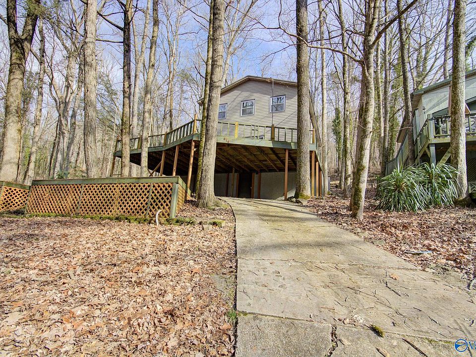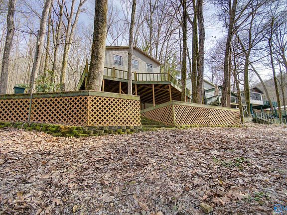 Experience lakefront living at its finest with this 1,900 sq ft house across from Lake Guntersville. Deeded boat dock & community lot access for water activities. Relax in hot tub surrounded by mature trees, basement for storage/creativity. Open floor plan & large front deck overlooking lake. Master on main level. Nestled at base of mountain for privacy & tranquility. The spacious and open floor plan allows for plenty of natural light to flow through the home, creating a warm and inviting atmosphere. The beautiful surroundings and breathtaking views make this house the perfect place to call home. Schedule your private showing today!