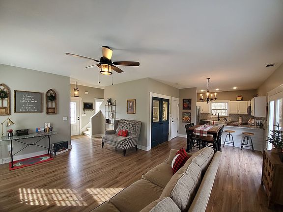 Beautiful 2 story home, with concrete driveway, sitting on 3/4 of an acre, level lot. NO REAR NEIGHBORS. You'll love the maintenance free exterior. Featuring stackable stones, vinyl siding, & gutters. Fall in love when you walk through the front door. This home is immaculate!! Open floor concept, new wood laminate flooring, new French doors leading to the nice size wooden deck out back. Kitchen has been totally remodeled!! Granite counter-tops, Ceramic deep sink, top of the line faucets, Stainless Steel Appliances!! Wait till you see the beautifully designed & efficient pantry!! Three bedrooms, 2 1/2 baths, new tile in 1/2 bath. Fenced in back yard, 1 1/2 car attached garage, septic, county water, cable, & total electric. Cox Cable, Tri-Co Electric. A must to see, move in ready & the owner's pride shows inside & out! USDA Eligible Area