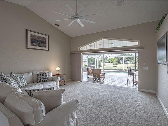 DEEP CREEK! Exceptional 3 bedroom, 2 full bath/2 half bath pool home on quiet cul-de-sac in highly sought after community with county water and sewer! Spacious floor plan features over 2,600 sq. ft. of living area, cathedral ceilings, crown molding and living room with large slider to lanai and pool. Huge kitchen offers expansive counter space and storage, oversized center island with breakfast bar, closet pantry, bay window, built-in desk plus dining room with French doors to lanai. Master suite includes large walk-in closet, lanai access and private bath with dual sinks, garden tub and walk-in shower. Second bedroom features two closets and attached full bath plus the third bedroom has two closets and a fireplace. Outdoor entertaining area features covered lanai, half pool bath, screened pool and spa overlooking large backyard with lake views. Additional features include dual a/c, hurricane shutters, new spa pump and timer, 2-car garage and not located in flood zone. Great location in deed restricted community close to I-75, restaurants, shopping, schools, boating, golf and short drive to SWFL gulf beaches. Don't miss this opportunity! Call for your private showing today!