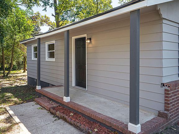 The open living/dining/kitchen is light-filled with the kitchen a true highlight! The kitchen renovation includes new cabinetry, butcher block counters, floating shelves, subway tile backsplash and new dishwasher & range. There is plenty of room for more than one cook in the kitchen and for friends to gather. A central hall leads to the home's 3 bedrooms and fully renovated bath. The bath's classic finishes include LVP flooring, a large profile, marble-look tile surrounding a deep tub with new shower head & a new vanity cabinet. The primary bedroom is tucked privately in the back and the scale of the guest rooms make them flexible as bedrooms, or a guest bedroom with a separate home office. A covered porch on the north side of the home serves as a more formal entrance while a second covered porch is perfect as a drop zone for boots, leashes & more. The large backyard with plenty of room for play is defined by a combination of chain link fencing and a neighbor's privacy fencing. Functional details include NEW ROOF, NEW HVAC and NEW WATER HEATER. Bijou Cottage is found in a location, convenient to downtown restaurants & shops with easy access to Aiken Regional and USC-Aiken.
