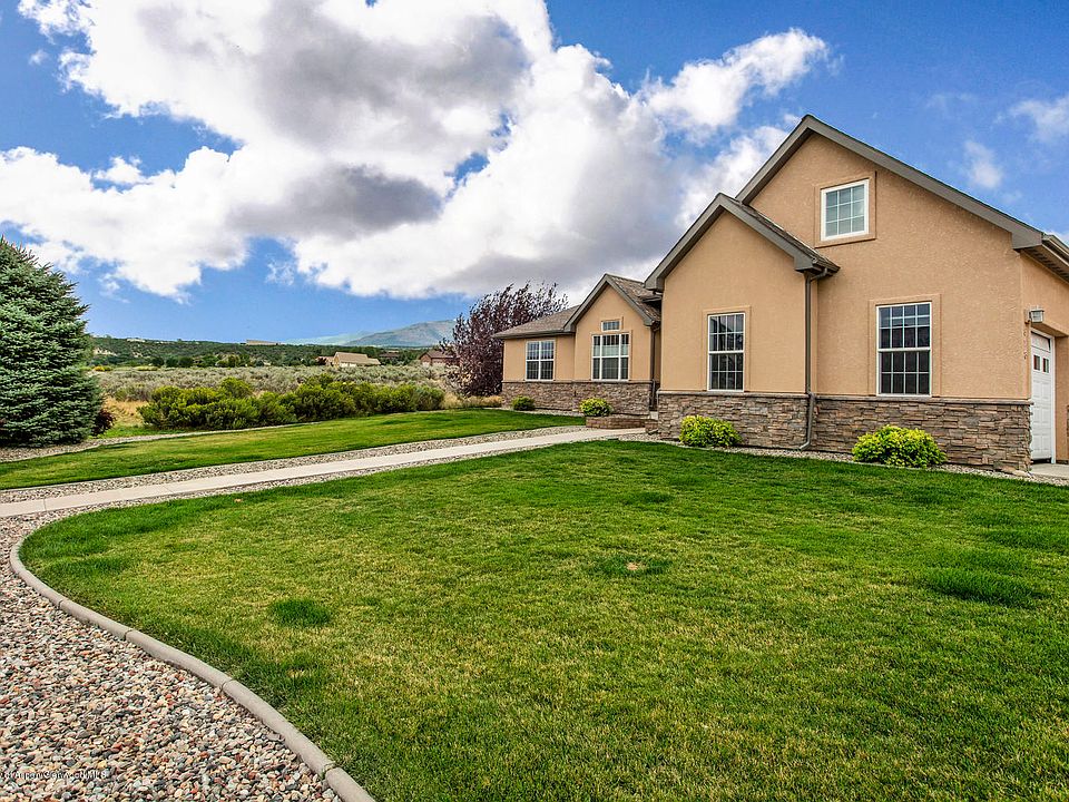Like New! This custom home has brand new hard wood flooring, new carpet, new paint, custom granite and tiling throughout. Dramatic vaulted ceilings create a grand entrance and windows are placed to capture the 360 degree majestic mountain views. Spacious bedrooms plus bonus room over garage. Ample parking is found in the 2 car garage, extended driveway and a newly installed split rail fence creates a secure environment for children and pets. With access to the recreation center and minutes from the Battlement Mesa Reservoir trailhead, this home invites for any lifestyle