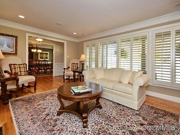 North Asheville - move in ready - handicap accessible with elevator. Main level offering formal living & dining rooms, kitchen with breakfast bar and nook, granite counters and Viking appliances, keeping room with woodburning fireplace, den with wet bar, office with built-ins, laundry room, 3 bedrooms, 3.5 baths. Downstairs offers flex/workout space, bedroom, recreation room with wet bar and 2 baths. Private back yard with covered patio.