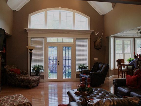 Rolling, tree-covered hills evokes a natural picturesque canvas for this captivating 2-story home. A generous wraparound porch spanning 2-sides of the home is a welcoming feature. Stacked stone-accents emphasizing the front door can be found adorning several features throughout the home. Inviting 2-story foyer; situated between stairs & decorative column formal dining room. Sunlight streaming into the 2-story, vaulted-ceiling family room gives the home a dramatic & spacious feel. A cozy stone fireplace flanked by bookshelves, creates a warm & comfortable atmosphere. Relaxing master bedroom includes His & Her closets & an exquisite private bath w/ jetted tub. Upstairs you'll find a charming loft overlooking the foyer & family room. Upstairs also includes two additional bedrooms & a large bonus room. Don't be surprised by the wildlife that often show up in the yard. The beautiful furnishings are negotiable.