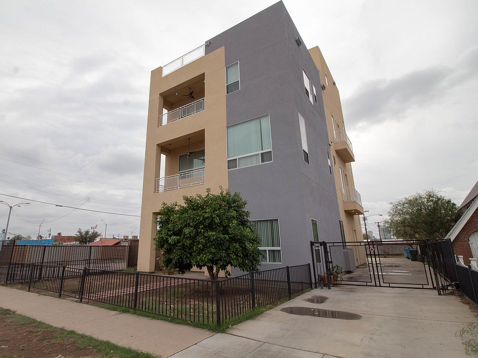 Incredible city loft living at it's finest! Custom built home or office w/ contemporary design, four levels w/elevator (ADA approved) of pure luxury! Huge great room w/ city views, 24 ft. cathedral ceilings, floor to ceiling windows, 2 gourmet kitchens w/ granite countertops, islands & breakfast bars. Loft with master suite, master bath featuring glass steam shower that seats 6, jetted tub, 2 separate toilet rooms, & massive walk in closet. Multiple balconies, over height 2 car garage, security & intercom system. No HOA! Head up to the Terraza for incredible 360 degree views of the city lights and all surrounding mountains! Close to downtown phoenix, Chase field (Diamondbacks), AMC Arizona Center 24, Garfield Elementary School, & North High School. Don't miss out on this incredible home!