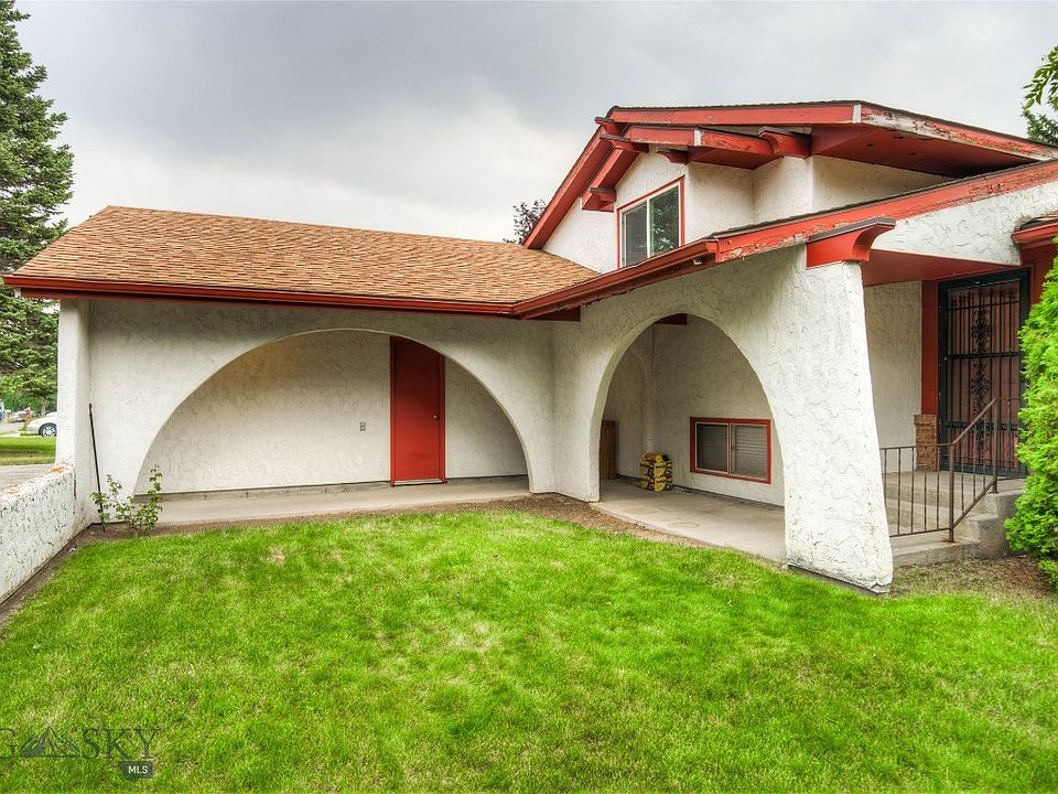 This unique and well-loved home in the heart of Bozeman hosts 3 bedrooms, an office, and 2.5 bathrooms. Fall in love with the memorable mix of stucco and brick exterior siding surrounded by mature trees and shrubbery in the large front yard. Step into the capsule-style, tri-level home and relax at the entry drop zone leading to the 70s-style sunken-conversation-pit living room with a gorgeous and functional brick fireplace. The kitchen has all updated stainless-steel appliances and plenty of storage opening to an informal dining area / breakfast nook. Round the corner into a formal dining room with a large multi-paned window and arched built-in accents. Head upstairs to find three bedrooms – one of which has a ¾ bath ensuite & laundry chute – and an additional full bath. Head downstairs to find a wet bar, home office, bonus area, and laundry room with bathroom and boiler/furnace access. The basement area has private access, tons of built-in storage, and beautiful brick arches throughout. This well-loved home is being sold as-is and is priced below the estate appraisal. The 2-car garage has been previously piped for heating. Access the fenced backyard, complete with concrete patio, from the French doors in the breakfast nook or side gate. While just seconds away from the thoroughfare of 19th Avenue, this home feels tucked away in a nice and quiet neighborhood. The central location makes for an easy commute to the local University, downtown Bozeman, and the primary cross-streets of Bozeman - filled with shopping, restaurants, and recreational opportunities!