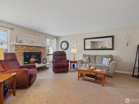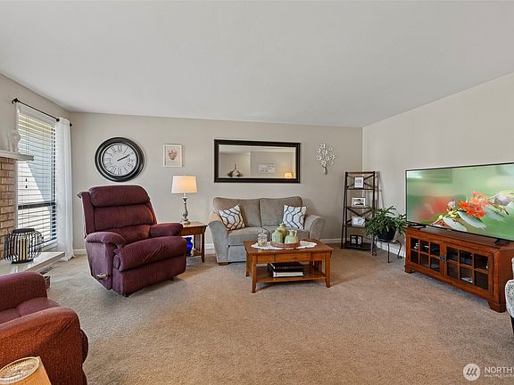 Discover this impeccably maintained single-story home, ideally located close to town, medical services, schools, and shopping, with freeway access just minutes away! Enjoy a serene fenced backyard with mature trees, lush landscaping, a covered deck, and a stamped concrete patio—perfect for relaxing or entertaining. The inviting living room features a cozy brick wood-burning fireplace. The primary bedroom includes a 3/4 bathroom, plus two additional bedrooms and a full hall bathroom. The eat-in kitchen offers space for a dining table and a sliding door to the deck. Updated in 2009 with new flooring, paint, roof, and furnace, this charming home blends classic style with modern comfort.