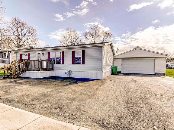 Welcome to this charming 3 bedroom, 2 bathroom manufactured home nestled on two lots with an oversized 2 car detached garage. This property offers the perfect combination of privacy and convenience. Step inside to find an updated interior with a spacious layout and modern finishes. The kitchen showcases recent updates including a refrigerator and range, ensuring your cooking experience is seamless. The furnace, AC, water heater, and roof layover have all been done within the past 5 years, providing peace of mind for years to come. The generous primary bedroom features an en-suite bathroom, while the two additional bedrooms offer versatility and comfort. Outside, the oversized 2 car detached garage provides ample storage space for vehicles and more. The property's location offers easy access to nearby amenities while still giving a sense of seclusion. Don't miss out on the opportunity to own this wonderful manufactured home. Home warranty from Home Warranty of America provided by seller for buyer's peace of mind.