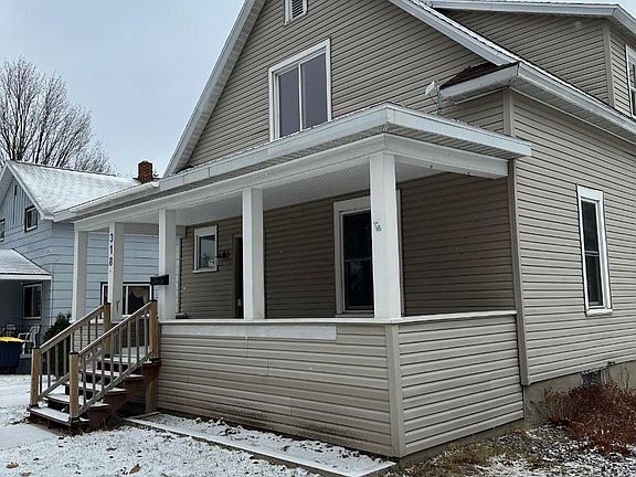 This city home features a Frasier's Kitchen with Cherry cabinets with glass display cupboards. Kitchen has a trayed ceiling with can lighting. The dining room has a slider that overlooks the beautiful backyard and the large 10x28 deck. The unfinished walkout basement does have laundry hook-ups and shelving for additional storage. Main floor has a half bath and upstairs has a newer bathroom with whirlpool tub. There is a one car detached garage and driveway for parking. Close to downtown amenities.