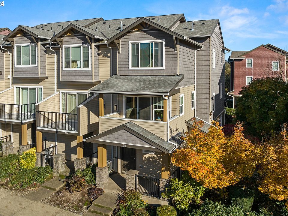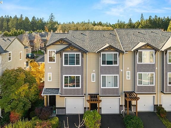 Location! Location! Move-in ready with fresh interior paint, newer high quality carpet/pad, new windows, newer furnace and A/C, new microwave, dishwasher and refrigerator! Fabulous end unit which brings extra space and extra light with the extra end unit windows! Living room with gas fireplace and sunset views from the SW facing balcony. Large open kitchen with eating bar, separate dining room, guest bath on main floor, upper floor loft / office, 1 bedroom with dedicated bath and primary bedroom suite with sunset views. Tuck under tandem double deep oversize garage, with mechanical / storage room and door to covered patio on street side of the townhome. Parking in driveway and off street guest parking. Easy commute to grocery shopping, restaurants, theater, Tanasbourne Town Center and Tanasbourne Village, Whole Foods, Kaiser West hospital, Streets of Tanasbourne shops,... minutes to light rail, Hwy 26, Intel and Nike and very convenient by foot or vehicle to Willow Creek lightrail station! [Home Energy Score = 8. HES Report at https://rpt.greenbuildingregistry.com/hes/OR10234021]
