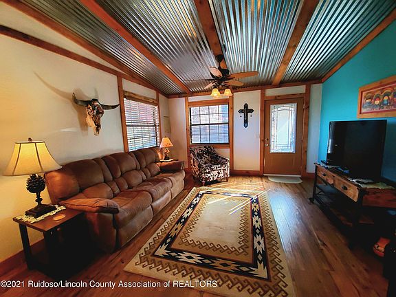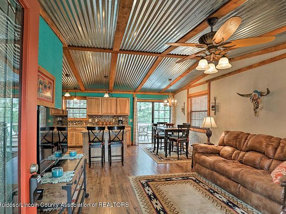 This newly updated 2-bedroom, 1-bathroom and is furnished/decorated with a contemporary southwestern decor and rustic mountain charm. The backyard is flat and has lots of room for the kids or dogs to play. This property has nightly rental history and is located near the The Ruidoso Racetrack and Casino.