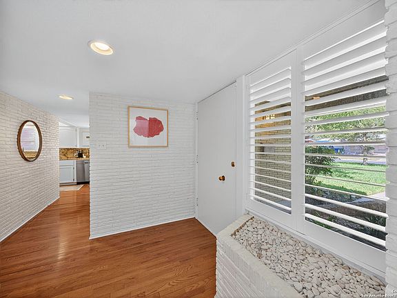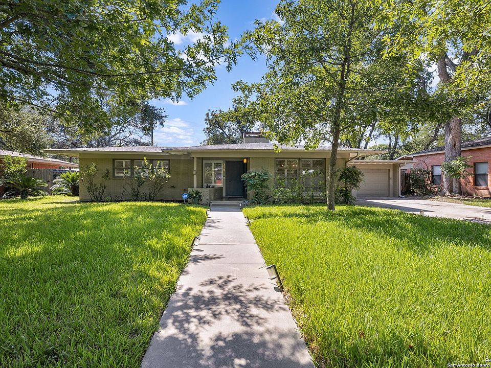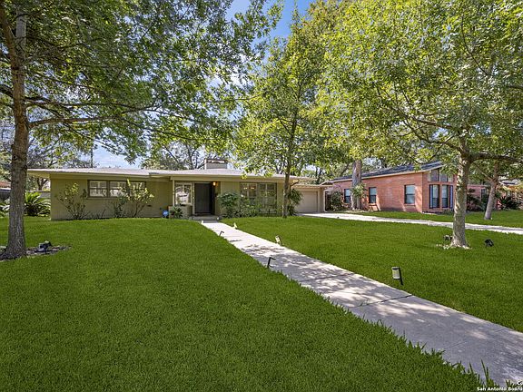 Charming midcentury home in the heart of AHISD. This 3 bedroom, 2 bath residence offers two spacious living areas, a functional single story layout, and timeless design elements including brick accent walls. Both bathrooms have been recently renovated, blending modern comfort with timeless style. Large windows fill the home with natural light, while the backyard offers additional versatility with a storage shed. Located within walking distance to two schools and surrounded by mature trees, this property combines convenience, character, and updates in one of San Antonio's most desirable neighborhoods.