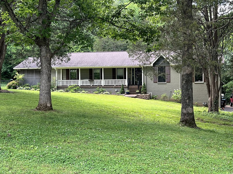 Nestled in the trees within a 15-20 minute drive from Nashville is this remodeled charming spacious home sitting on 2.5 Private acres**4 Bedrooms, 3 Baths, over 3000 sq.ft. Kitchen has been transformed with new white cabinets, granite countertops, tile backsplash, new appliances, tile floor**Separate Living room/dining room has hardwood floors**Extra Large Den with cathedral ceiling, woodburning fireplace insert, wood floor, bookcases**Large Primary Bedroom w/2 closets**Primary Bath had a total renovation with huge tile shower, large custom built vanity cabinet, solid surface countertop, tile floor**Basement has LTV flooring throughout with a spacious bedroom, large Rec Room and Bathroom**Perfect teenager/in-law area**Laundry room has a lot of cabinets, tub sink, tile floor**Screened in porch overlooks the lush yard**There is a storage/workshop area in the basement and the oversized 2 car garage offers room for storage as well**Quiet neighborhood and convenient to everything**Must See!