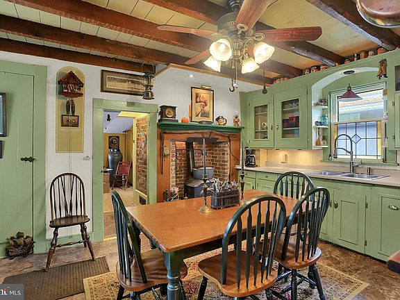 - Ceiling Fan(s), Eat-in Kitchen, Exposed Beams, Wood Floors, Floor Plan - Traditional, Primary Bath(s)