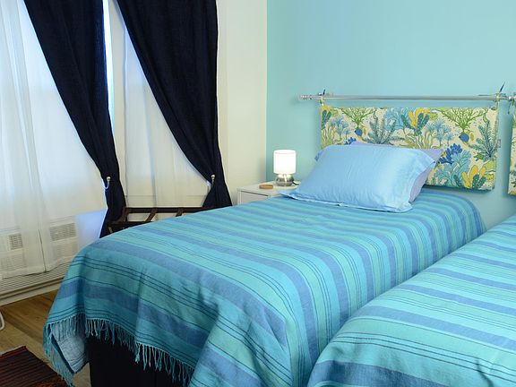 Beautiful furnished one bedroom apartment in prime location. It's 550 sqft. 10 min walk to Hoboken Path Train. 1 min to a major park, 3 min to Washington St, 5 min to water front. Close to shopping, restaurants, bars, cafes. W/D in the unit. All appliances (conventional oven/stove, microwave oven, refrigerator, dish washer, W/D, canister vacuum, iron, coffee maker, toaster) and furniture are brand new. Apartment is in a building with an elevator. $2550/mos, one year lease is required, two months' security deposit is needed. The rent includes water. Heating and cooling is with electricity and it's extra to be paid by the tenant. No pets please. No smoking in the apartment. Apartment will be available by June 20th. For showing please call . No showings between 1-4pm. If you are looking for an apartment for an earlier date or wish to have an unfurnished apartment, please do not call. Owner pays for water