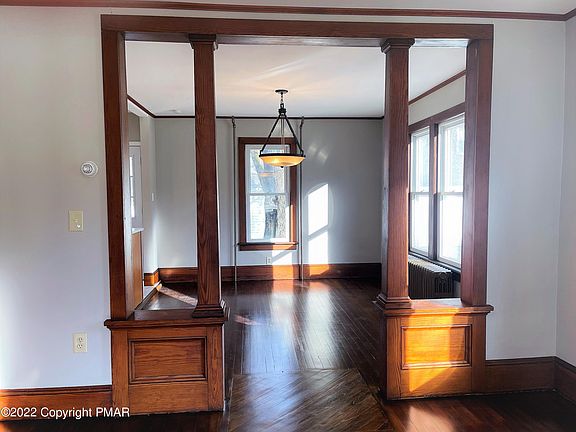 Craftsman home. This stunning home has been completely renovated and updated while retaining its many special features and old world charm. Walking distance to downtown Stroudsburg, this home offers original wooden features including thick trims, 6 panel doors, custom millwork and hardwood flooring. Modern embellishments enhance the brand new kitchen offering both beauty and functionality. The primary bedroom is bright & attractive with its shape, dimensions and private outside balcony. Large front porch – perfect for your rocking chairs! Efficient natural gas. Close to bus routes, schools, ESU, hospitals, shopping, dining & I-80.