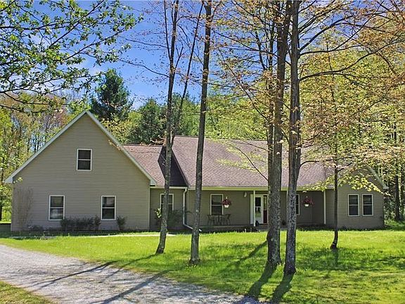 First time on market this Ranch home is situated on a private dead end road with 29+ acres. This home has an open concept feel with Vaulted Ceilings in the living room and kitchen, recessed lighting, and Gas Fireplace for a focal point. The main level consists of 2 nice sized spare bedrooms with a bathroom on the one side of the home and a large master en-suite on the other. The master bath features a jet spray tub, dual vanity and two walk in closets. This Oak Kitchen has an abundance of cabinet space featuring two ovens, a bonus prep sink, and breakfast bar for seating. The dining room is off the kitchen, and allows for great entertaining. Laundry on the main, and a partially finished bonus room above the garage. The large storage area upstairs is pre plumbed for a future bathroom. As a secondary heat source, a wood burner is an option and piped into the duct work. Outside enjoy the large decks, wildlife, yard space, or barn/ workshop.