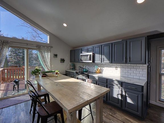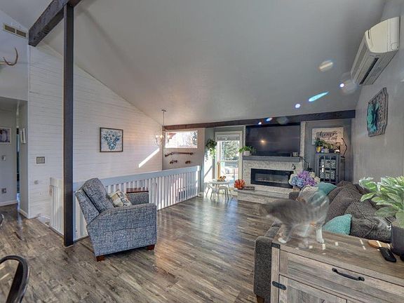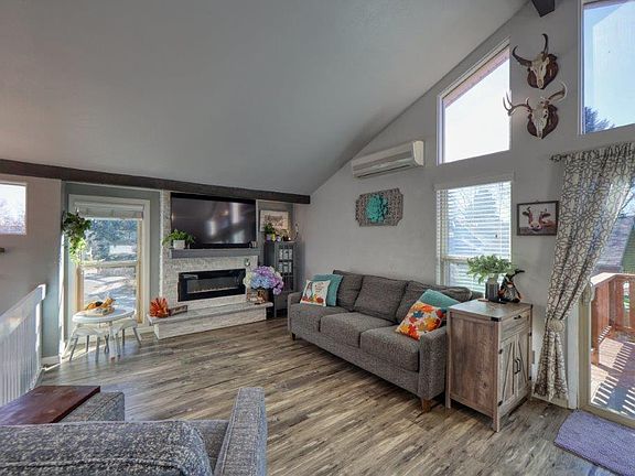 On a quaint cul-de-sac, this 3 bed, 2 bath home is privacy-fenced in back, and offers an inviting open concept with vaulted ceilings within walking distance of an elementary! The updates/upgrades like the shiplap accent wall and gas fireplace make for great backdrops, whether it's bright and airy by day or comfortable sanctuary by night . A newer kitchen and updated bathroom, as well as newer windows, metal siding, low maintenance decking, and a new hot water heater certainly add up to a lot of peace of mind too! ***BONUS: The downstairs living room has been used as a master bedroom with its own bathroom and walk-in closet. So, THIS COULD BE A 4 BED, 2 BATH HOME - in a walkable, edge-of-town neighborhood with quick access to a bar and grill, golf, the hospital and the high school.