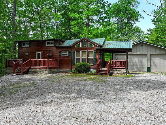Turnkey log-sided 2BR/1BA cabin near Lake Cumberland—just minutes from a boat ramp! Built in 2013 and currently operating as a successful short-term rental, this fully furnished home sits beside Army Corps of Engineers land, offering natural privacy and outdoor access. Inside, you'll find new kitchen appliances, new flooring, a brand new mini split HVAC system, and a brand new hot tub. The open-concept layout showcases rustic charm with modern comfort, plus a cozy firepit area outside perfect for peaceful evenings. One bedroom is located on the main floor with a Queen bed, plus a sleeper sofa in the living room. Upstairs, the loft features a Full bed and two Twin beds, comfortably sleeping up to 8 guests. The 30x40 detached garage is currently set up as a game room with a ping pong table, air hockey, and foosball. A 12x30 finished bonus room at the back of the garage, accessed from a private side door, offers potential for another bedroom, office, or hangout space. Additional 12x8 storage building w/ wood floor and shelving- ideal for storage for lake gear and/or supplies for Airbnb. A rare opportunity to own a proven income-producing property or serene Lake Cumberland retreat!