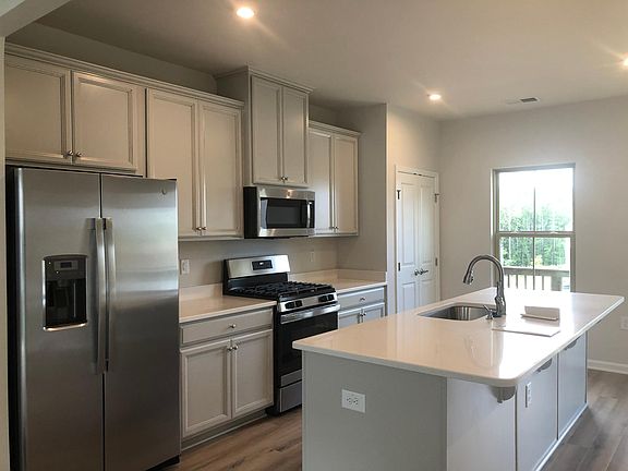 Beautiful townhouse in desirable west Cary Channing Park community. Across street from Panther Creek High, 1/2 mile to I-540 for easy access to RTP, Duke/UNC, super convenient to all shopping, Whole Foods, Park Side Commons are minutes away. * 1st-floor - recreation room/office w/half bath and 2 car garage. * 2nd floor - The stunning kitchen island anchors the open-concept space. The bright kitchen includes a gas range, features quartz counters, an LVP floor in the entire kitchen. * 3rd floor- Master bedroom with gorgeous bath and 2 other bedrooms w/ shared bath. 318 Poplar Leaf Way, Cary, NC 27519 Luxury townhouse in prime location of West Cary, with best schools! Three bedrooms plus first floor recreation room/office with the bathroom and closet. Rear entry two car garage and oversized deck. Gourmet kitchen has stainless steel appliances, large island, upgraded cabinetry. Master suite includes luxury bathroom, WIC and tray ceiling.