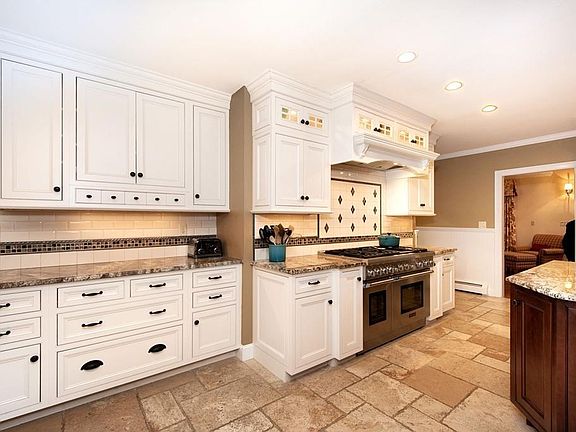 WOODLAND HILLS- Stunning colonial for the discerning buyer w sophisticated taste! If entertaining is your forte - from the front door to the backyard - this house has it all! Equipped w/spa-like master bath & high-end kitchen by Transition Kitchens. Kitchen: cream inlay cabinets, under lighting, immense cherry island, pantry, CT, Thermador appliances, 6+ burner stove, wine fridge, pantry, granite counters & dining area for informal meals! Open floor plan to formal living room & columned, dining room. Cathedral gathering room w/fireplace, HDWD floors & french doors to deck & the resort-like backyard: pool, patio, firepit & shedl! 2nd floor grand master suite-Carrara marble, tile bath w/2 vanities, massive shower, 3 more generous bdrms, 2nd floor laundry, 2 staircases, finished basement w/playroom, exercise room, bedroom, office, & extra bath. 3 Car garage, CAir. Great No Marshfield location, beaches, golf, & marina!