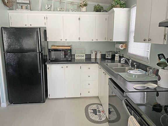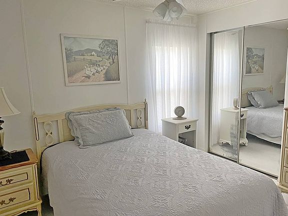 This home is in Swiss Golf & Tennis, a large 55+ community with a variety of amenities including an executive 18-hole golf course and access to Lake Henry. Homes in this community are on lot leased land. Owning the home, but not the land, you pay a monthly lot rent of $637, which gives you and your guest access to the amenities of the community........... MOVE-IN READY...CHECKS ALL THE BOXES! .................... Pull out the checklist of features you are looking for in your Florida retirement home. How many do you see in the photos and information below?.....................This turnkey home is move-in ready. The work to make it look brand new is already done! You will be in a great community with a golf course, lake access and a variety of amenities to keep you active...... Your home has a scenic view of the golf course and pond, new roof, a bonus room for hobbies or storage, easy-keep laminate floors, calm coastal paint colors, an attractive kitchen, a golf cart along with a double-door golf cart garage (oversized)...and so much more!..................... +++New roof (2023)..... +++Newer double pane windows..... +++A/C (2013) serviced regularly..... +++Double driveway..... +++Floors are a light laminate throughout..... +++Both bathrooms are updated..... +++2 walk-in closets..... +++Kitchen has black appliances..... +++Year round Florida room at the back of the home (an additional 163 sq. ft. of living space)..... +++Laundry room in shed with a newer washer and dryer..... +++Golf cart included..... +++Shed has double doors allowing you to pull your golf cart inside.................... This very active 55+ gated community offers lots of extras: two pools, two clubhouses, a restaurant and a pub; also, tennis courts, pickle ball, golf, bocce ball. horseshoes, shuffleboard and corn toss, just to name a few. There are many shows and fun filled activities to do in this park or you can just relax and enjoy the sunshine. DON'T HESITATE! Call for more info right away.