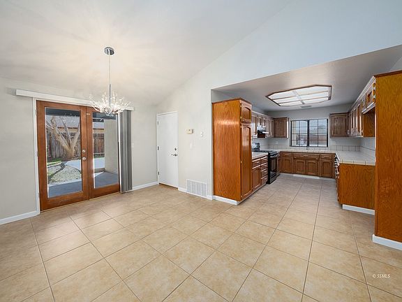 This home has a great kitchen with tons of cabinets and counter space! Dining area and large living room with fireplace for cosy nights! The master bath has dual sinks and all three bedrooms are nice sized. The home is located in a nice neighborhood. Covered patio , spa and shed can stay! Lots of paved parking and sideyard space!