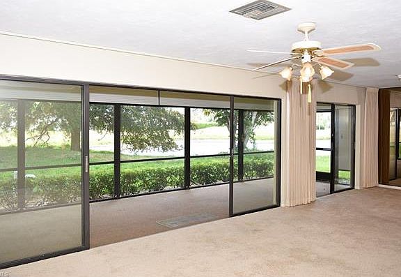 Rarely Available! Come home to relax on your south facing, screened lanai with tranquil lake and landscaped views, just minutes from Downtown Naples, 5th Ave and the beaches. This Lakewood Villa has 2 beds and a den/3rd bed, 2 baths, an eat in kitchen, dining area and living room. The home is tucked away near the end of a quiet cul-de-sac. The Rheem a/c was replaced in 2009 and the roof in 2006. The kitchen has a tray ceiling with crown molding and the den has glass French doors, wet bar and great views! Good sized laundry room, great storage and an attached 2 car garage make this a very comfortable Naples residence. Added bonus of low HOA fees of $170 per month which covers landscape maintenance, irrigation and cable. Welcome Home!