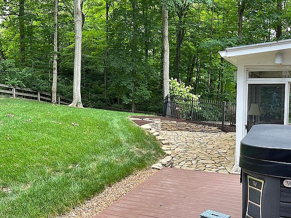 Stunning and extremely private wooded cul-de-sac colonial that sits on almost 1 acre of land. Showplace kitchen with granite and stainless steel appliances. Huge living room with gas fireplace, wet bar with ice maker, leads to 18x39 TREX deck. Formal dining room that also has a gas fireplace. Finished basement with full bathroom in the lower level. Fenced in yard. Hardwood floors thru-out. All brick exterior. Enclosed 3 season room.