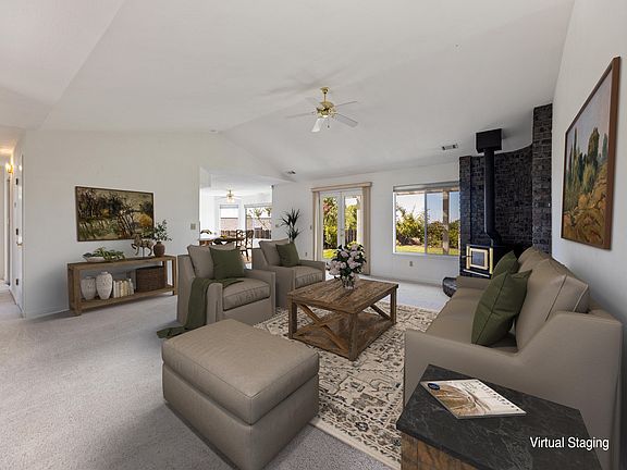 *OPEN HOUSE this Saturday 7/23 from 11am-1pm* Stunning Westside home in Riverpark Highlands, perfectly situated on an oversized lot with captivating views of the city lights! Eye Catching custom finishes throughout, vaulted ceilings and spacious common areas. Beautiful, centrally located kitchen with double ovens, Corian countertops and large breakfast bar and adjoining dining space. Private owner's suite with double sliding door providing access to the full length, covered back patio. Freestanding woodstove, indoor laundry room, security system and ceiling fans. Gated Boat/ RV parking, beautiful retaining walls and lush landscaping. Property backs to a greenbelt has cherry, lemon, nectarine and tangerine trees. Storage shed, decorative curbing and fully fenced backyard. Must See!