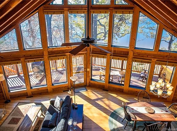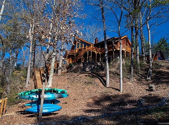 Come take a load off and enjoy the relaxing views of this gorgeous & unique waterfront property! Unbelievable views through the big windows & over-sized wrap-around porches to take in the lake from every angle! Interior features an Open floor plan w/ cathedral ceilings and tongue and groove cedar throughout. Wood burning stacked-stone fireplace. Chef's kitchen w/ gas range/oven, SS appliances & center island with bar. Owners suite is on the main level w/ bathroom & walk-in cedar closet. Recently updated bathrooms. Walk-out basement could be used as 2nd Living Quarters w/ separate Kitchen & outside entrance. Located on quiet Lookout Shoals Lake in the exclusive Riverwalk community, you can enjoy the Lake Life every day! Private pier with newly-built dock w/ boat slip and kayak/canoe launch area. Community amenities include boat/RV storage, boat launch, dock/pier, beach swimming area and covered picnic shelter. Would make a great Airbnb, short-term vacation rental or corporate retreat!