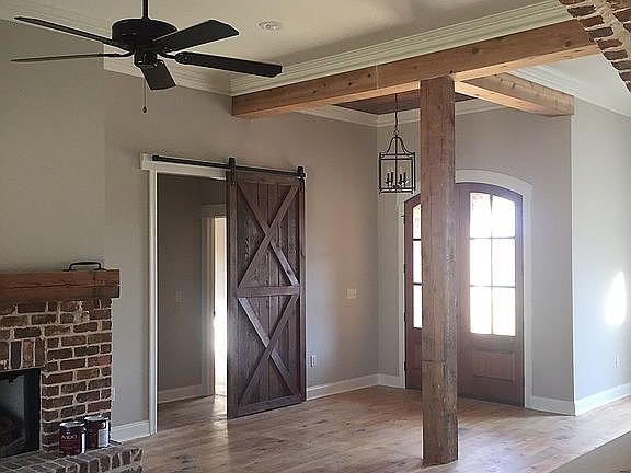 Custom 3 BR 2 BA Home with Farmhouse Accents throughout. Cedar Beams and Columns, Barn Door, Granite, Pine Floors Throughout, Farmhouse Sink, Extreme Master Bath with 2 Closets, Gated Subdivision, Clubhouse with Community Pool and Stocked Lake for Residents, Continuous Water Heater, Wall Oven, Exquisite Kitchen.