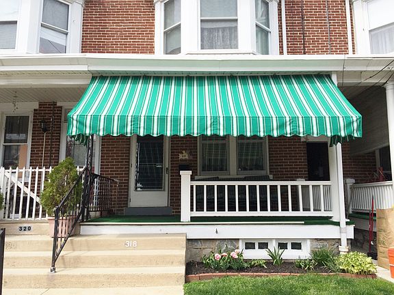 Home offers all of the conveniences of city living at an affordable price. Many upgrades on this row home; new roof 2014, updated kitchen & heating/ac, replacement windows, flooring. Lovely front porch with awning. Hardwood under carpet.