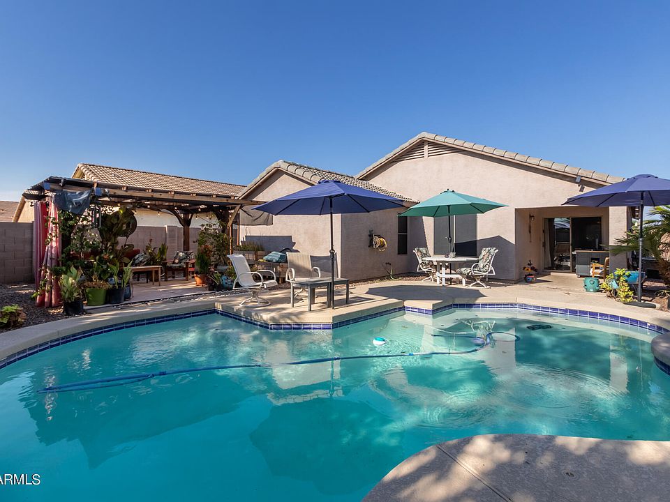 WOW!! 3.37 ASSUMABLE INTEREST RATE! PLEASE ASK YOUR BUYER'S AGENT TO CHECK MLS DOCUMENTS TAB FOR MORE INFO. This is a Charming Single Level Home with Private Pool featuring 3 Bedrooms, 2 Bathrooms, and Open Floorplan with Vaulted Ceilings, ALL Natural Travertine & Wood Floors (No Carpet). The Covered Patio invites indoor & outdoor living in harmony. The Upgraded Kitchen features SS Appliances, Granite Countertops, Recessed Lighting, and Premium Cabinets. The Primary Bedroom is a sanctuary of privacy. Spacious, yet cozy with a view of the beautiful pool. The Primary Bathroom features Brand New Custom Shower. YOU are going to Absolutely Love The Backyard! Featuring a Large Private Pool, Shady Gazebo with Mature Landscaping that provides Complete Privacy. PLEASE SEE 130K FEATURES & UPGRADES.