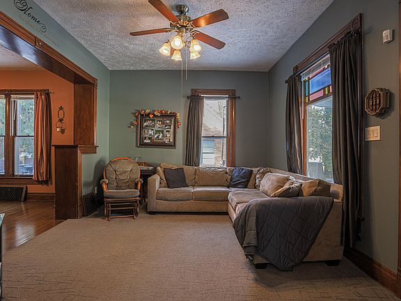 Step into this 2 bedroom ranch home, with updated covered front porch, and take in the beauty and craftsmanship of stained glass windows along with exquisitely maintained original woodwork and wood floors. Main floor with over 1000 FSF, features great room, family room, dining room, kitchen, back porch with drop zone, bedrooms and full bath. Lower level features 2nd family room with new paint and carpet, plus large laundry area and store room. New breaker panel in 2020. Close to shopping and quick interstate access.