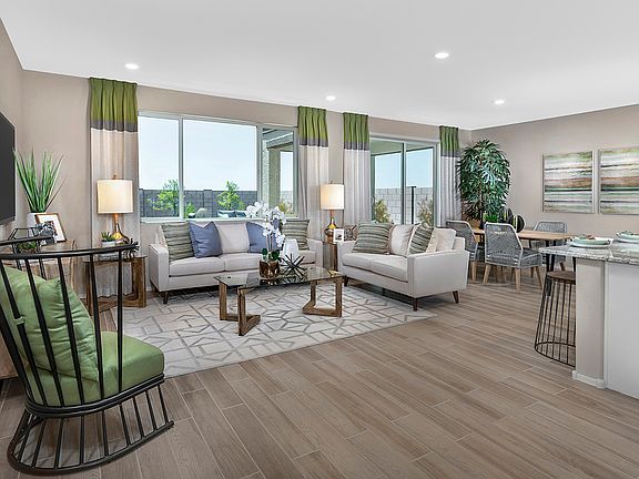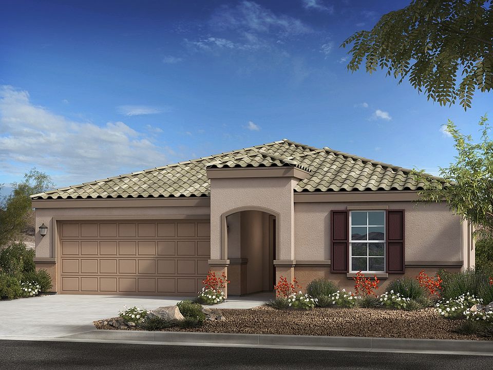 This beautiful home features an open concept floor plan with a generous great room that offers access to a covered back patio. The kitchen includes 42-in. upper cabinets, a center island, granite countertops, and black Whirlpool® appliances, including a gas stove. The master suite features a walk-in closet, and the master bath boasts a walk-in shower and a dual-sink vanity. You'll also find two secondary bedrooms and a secondary bath. Additional features include Emser® tile flooring in the main living areas, Shaw® carpeting in all bedrooms, Moen® WaterSense® kitchen and bath fixtures, and Generation Lighting fixtures. This ENERGY STAR® certified home also includes a 40 gallon gas water heater and a Carrier® 14 SEER A/C with programmable thermostat. This community offers playgrounds, barbecue grills and ramadas for your family's entertainment. This home occupies an oversized corner homesite. Please call for more information.