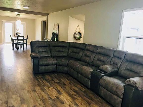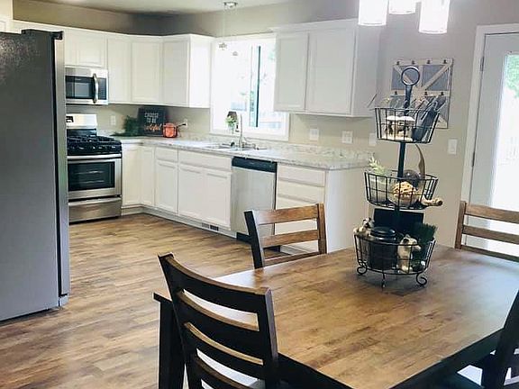 Complete Remodeled Home Malta MT House Updated House with Garage Modern finishes and color pallets were used in the complete remodel of this 3 bedroom, 2 bath home with 21'x32' detached garage in Malta, MT. The main floor measures just under 1000+/- square feet and consists of an open concept living, dining and kitchen area, with grey toned laminate flooring, perfectly complimenting the grey/taupe toned walls, a color scheme that is carried throughout the home. White soft-close cabinets in the kitchen coordinate with the white trim and are accented with marble patterned countertops and stainless steel appliances, including a gas range, built-in microwave, side-by-side refrigerator and dishwasher. New windows let in plenty of light and add to that from the newly installed modern light fixures. A master bedroom is located on the main floor, as is a landry room and ceramic tiled master bath with tub/shower combo. A second story adds a Bonus Room for use as a 4th bedroom, office, play room, sewing room, or anything the new owner desires, the options are endless. 2 bedrooms, complete with egress windows can be found in the 672+/- sq.ft. finished basement as well as family room, additional storage and a full bath with ceramic tiled walk in shower. The remodel process, undertaken over the past year, included the addtion of new windows, wiring, plumbing, sheetrock, flooring, light fixtures, kitchen, 2 baths, hot water heater, forced air furnace, gutters, and insulated garage door, essentially creating an entirely new house. A new roof was installed in the last 5 years.