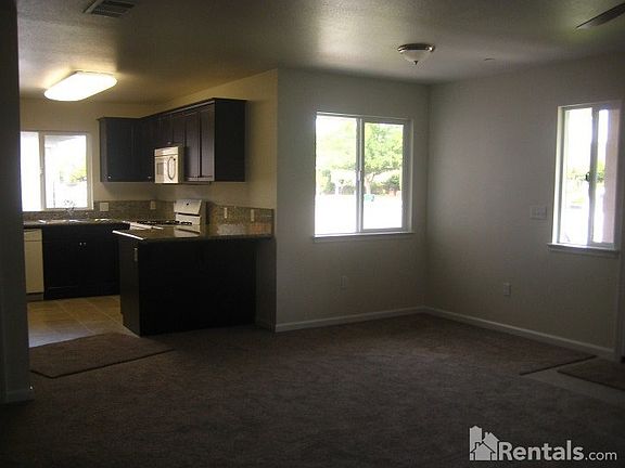 S/Merced, E/ Freeway 99 Brand New Custom Duplex, 3 bedroom 2 bathroom, approx 1200 sq ft. Kitchens have granite counters, gas cook top, microwave and dishwasher. Kitchen has bar counter open to good size Great Room. Dining combo with ceilings in Great Rooms. Blinds are being installed. Small patio yard with gate and a small patio area, for barbeque or patio set. Just a couple blocks from downtown Fowler. Separate laundry area between each unit. Covered 4 car carport. Monthly rent includes yard care and Sewer only. Prefers no pets. $1350 includes Washer, Dryer, Refrigerator. $1250 without