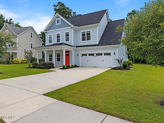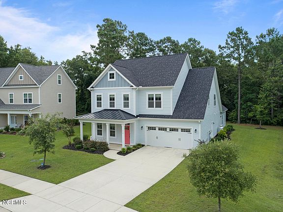 Located in the highly desirable neighborhood of Saltwater Landing and just 3 miles to the beautiful beaches of Topsail Island, this tastefully designed 2-story, 4 bed/3.5 bath home provides floor to ceiling aesthetics and functional upgrades. With 12' ceilings, crown molding, 5.5'' baseboards, and LVP flooring, the open concept living space abounds with light throughout.