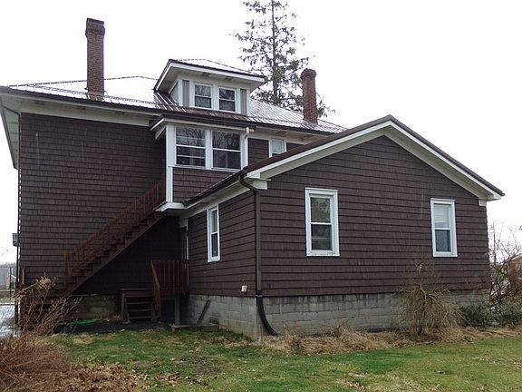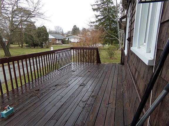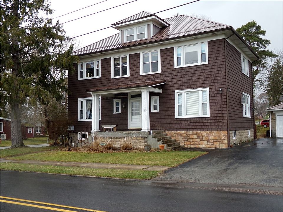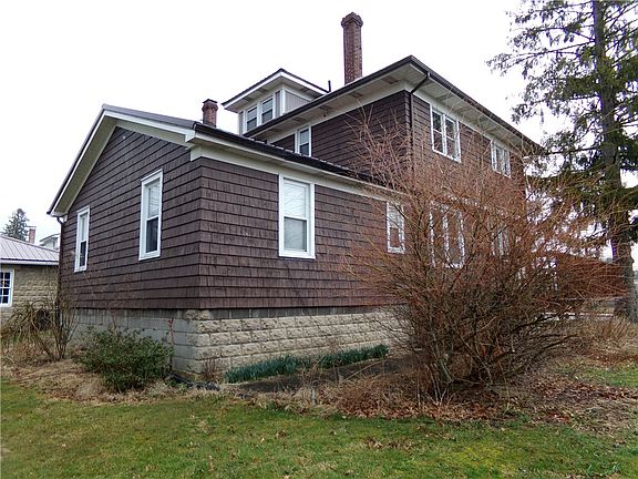 This grand, older home is packed with potential and offers a variety of possibilities. With 4-5 bedrooms and 2.5 baths, it could be used as a single-family or two-family home. First floor features include an eat-in kitchen with pantry closet; large living room/dining room with hardwood flooring and fireplace; 3 bedrooms and 1.5 baths. The second floor consists of 2 additional bedrooms (or 1 bedroom and laundry room), a full bath, a huge family/bonus room and another kitchen with appliances. There is a walk-up attic, full basement, a covered front porch, a side deck with retractable awning and a one-car, detached garage with paved driveway.