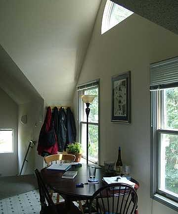 No shared walls with a neighbor, this freestanding loft unit is above your own spacious garage (and a separate single car garage). Enjoy lots of natural light in this contemporary loft with Cathedral ceilings, new refrigerator and dishwasher, and your own washer and dryer. Two private entrances. Historic In-Town neighborhood with brick streets, big trees. Short walk to downtown Champaign and 1.2 miles from University of Illinois quad. On Green bus line. Owner pays for water and garbage removal, lawn care. A non-smoking unit, references required.