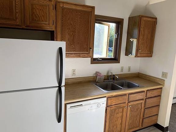 Prime Location! This beautiful upstairs apartment is centrally located in Soldotna, offering a tranquil environment surrounded by trees and no neighboring buildings except behind. The unit features 2 bedrooms, 1 full bathroom, a vaulted ceiling, full-size washer/dryer, dishwasher, and ample storage. Recently renovated with new carpeting, fresh paint, modern light fixtures, and new windows. Enjoy the convenience of a fenced area for pets or children to play, and benefit from the proximity to the elementary and high school, hospital, and church. Pets are welcome with a weight limit of 20 lbs, excluding cats. Rent includes hot water, water/sewer, refuse collection, snow plowing, and lawn maintenance. Tenant is responsible for electrict and gas. Monthly rent is $1450 plus $30 sales tax and a $50 pet fee. A security deposit of $1450 (equivalent to one month's rent) is required, along with an additional deposit for pets. Owner pays gas, snow and lawn, and all other maintenance,