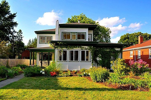 Modern living in a 1933 Century of Progress World's Fair Home. Sun-drenched open floor plan, w/ kitchen and breakfast bar, sweeping into DR & spacious LR w/ FP. 1st floor family room opens to deck. 2BRs and 2 baths on 1st floor. 2nd floor features a master suite with an additional BR. HW floors throughout. Backyard deck for entertaining, 2 car garage w/ attached shed, perennial gardens front and back. Move-in ready!