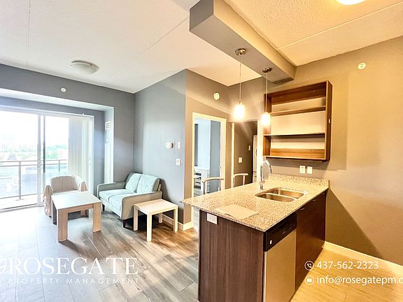 Modern 1-Bedroom Condo in Waterloo 550 Sq Ft Welcome to 809-318 Spruce St, a stylish 1-bedroom, 1-bathroom condo offering 550 square feet of bright and modern living space in the heart of Waterloo. Perfect for students, young professionals, or anyone seeking a convenient and low-maintenance lifestyle, this unit combines comfort with a prime location.The condo features an open-concept layout with a sleek kitchen, spacious living area, and a well-sized bedroom. Large windows fill the space with natural light, and the full bathroom is finished with quality fixtures.Situated just minutes from Wilfrid Laurier University, the University of Waterloo, shopping, dining, and public transit, this condo offers unmatched convenience. Schedule your viewing today and experience urban living at its best.