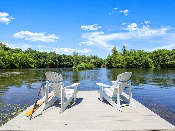 Waterfront living. Vacation year round in this immaculate Greenwich Lakeside home perched on the edge of Frye Lake. Memories will last forever w/the water activities you can enjoy; swimming, fishing, kayaking, canoeing, ice skating & unique floating dock dinners. Feel the calm w/ sweeping lake views from nearly all the rooms. You can move right into this 4/5 Br, 3 Bth home w/2,700+ sf of liv space. Workshop, fam rm w/2nd fireplace, office/Br w/full bath complete LL. Extended liv space can be experienced dining on the deck off Kit.& entertaining on pergola covered patio. Lrg front lawn & fenced veg. garden perfect for green thumbs. Come see the magical setting w/ever changing water views, glorious sunsets & magnificent private vistas. A hidden secret..